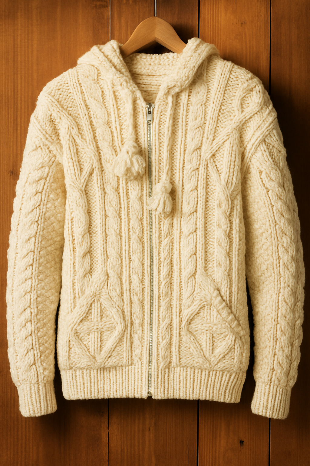- 🖐️ Handgemacht: Jede Jacke ist ein handgefertigtes Einzelstück mit kunstvollem Strickmuster.